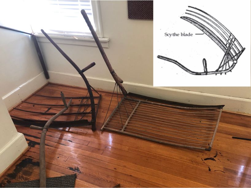 cradle scythe. The scythe is the blade that cuts the grain as it is