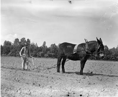 experience. The implements shown here were for plowing the soil, spreading fertilizer, and planting seeds. |